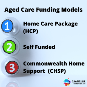 There are three types of aged care funding models: • Home Care Packages (HCP): This funding model is designed to meet the needs of any